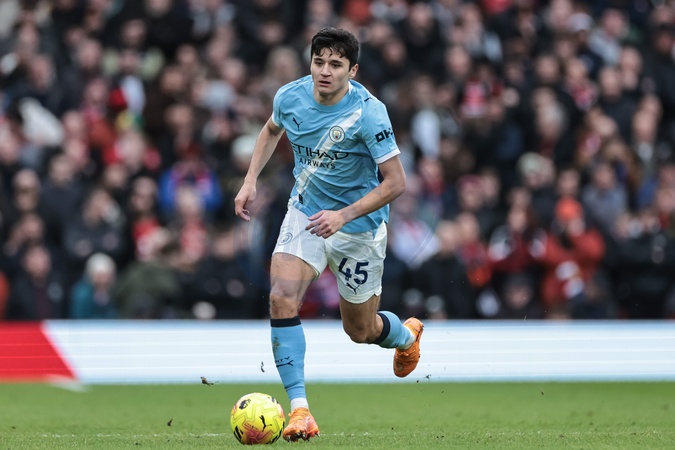 Abdukodir Khusanov of Manchester City breaks with the ball during the Premier League match Manchester United vs Manchester City at Old Trafford, Manchester, United Kingdom, 17th January 2026, Credit:Mark Cosgrove/News Images / Avalon
