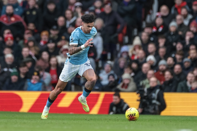 Nico O'Reilly of Manchester City breaks with the ball during the Premier League match Manchester United vs Manchester City at Old Trafford, Manchester, United Kingdom, 17th January 2026, Credit:Mark Cosgrove/News Images / Avalon