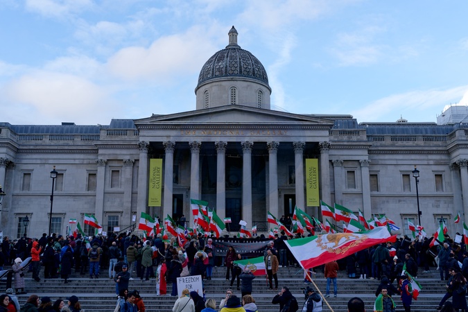 Free Iran protest. Trafalgar Square to Iranian Embassy. 17th January 2026.