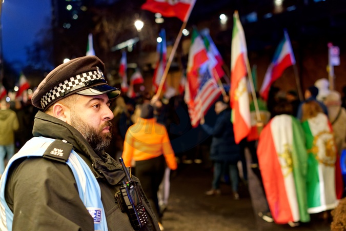 Free Iran protest. Trafalgar Square to Iranian Embassy. 17th January 2026.