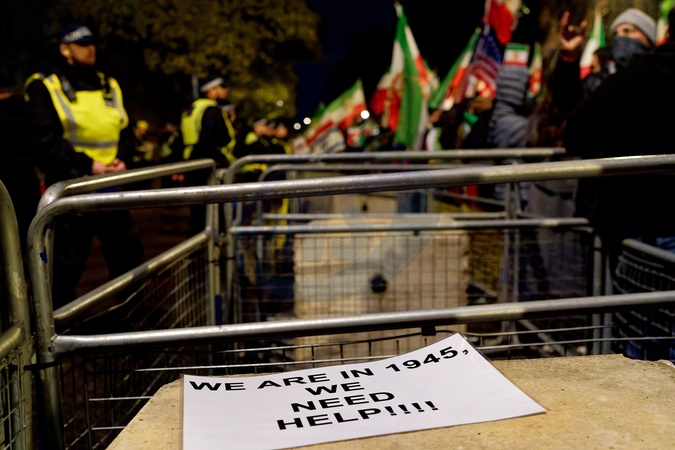 Around 1200 protested met at Trafalgar Square in front of the National Gallery and then marched to the Iranian embassy., Credit:Aldo Ciarrocchi / Avalon