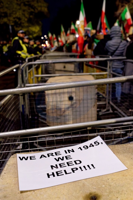 Around 1200 protested met at Trafalgar Square in front of the National Gallery and then marched to the Iranian embassy., Credit:Aldo Ciarrocchi / Avalon