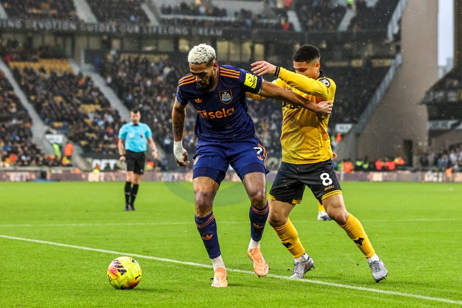 Joelinton of Newcastle United and Joao Gomes of Wolverhampton Wanderers battle for the ball during the Premier League match Wolverhampton Wanderers vs Newcastle United at Molineux, Wolverhampton, United Kingdom, 18th January 2026, Credit:Ae Cosgrove/News Images / Avalon