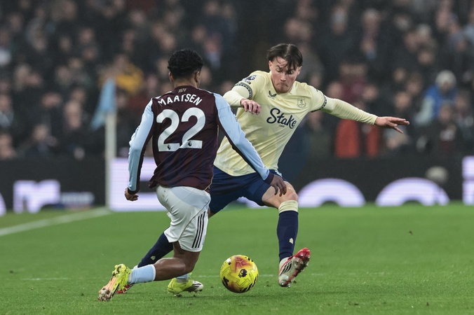 Ian Maatsen of Aston Villa and Nathan Patterson of Everton battle for the ball during the Premier League match Aston Villa vs Everton at Villa Park, Birmingham, United Kingdom, 18th January 2026, Credit:Mark Cosgrove/News Images / Avalon