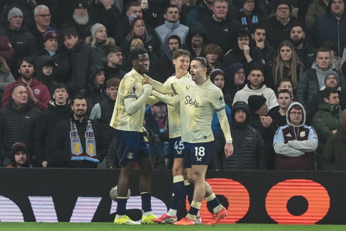 Thierno Barry of Everton celebrates his goal to make it 0-1 during the Premier League match Aston Villa vs Everton at Villa Park, Birmingham, United Kingdom, 18th January 2026, Credit:Mark Cosgrove/News Images / Avalon