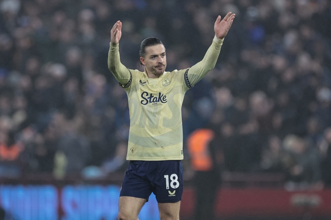 Jack Grealish of Everton salutes the Villa fans during the Premier League match Aston Villa vs Everton at Villa Park, Birmingham, United Kingdom, 18th January 2026, Credit:Mark Cosgrove/News Images / Avalon