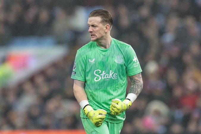 Everton goalkeeper Jordan Pickford celebrates the win during the Premier League match Aston Villa vs Everton at Villa Park, Birmingham, United Kingdom, 18th January 2026, Credit:Mark Cosgrove/News Images / Avalon
