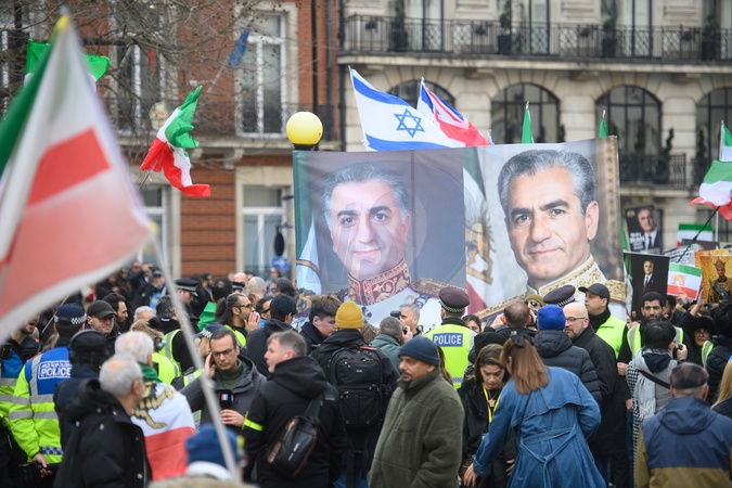 Protestors opposed to the Iranian regime gather in Regent Street and hold up placards of exiled Crown Prince Reza Pahlavi of Iran before marching to Whitehall in London, England, UK on Sunday 18 January, 2026., Credit:Justin Ng / Avalon