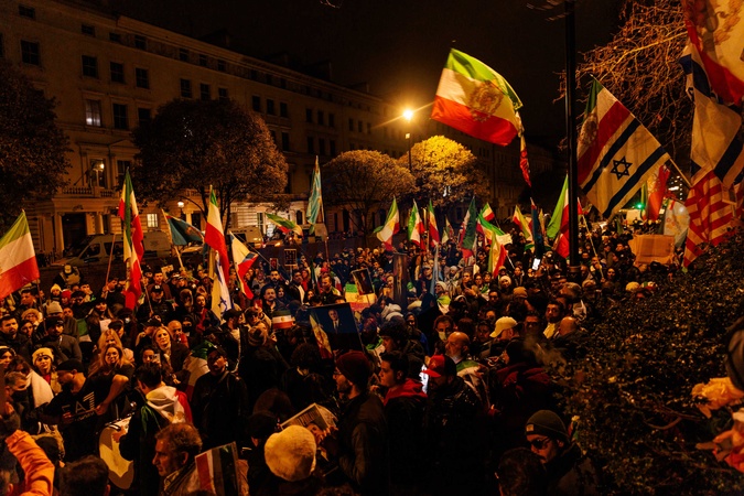 Iranian Embassy, London, UK. 18th January 2026.Thousands of Iranians continue to gather in front of the Embassy of the Islamic Republic of Iran, in protest of the reported violence, mass killings and arrests of the protesters in Iran and show support for the return of Crown Prince Reza Pahlavi., Credit:Photo by Amanda Rose / Avalon