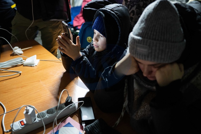 Kyiv residents charge their phones at a mobile Point of Invincibility operated by the State Emergency Service of Ukraine and deployed in the Rusanivka residential area due to power and heating outages following another wave of mass attacks by Russia on the energy system of Ukraine, Kyiv, Ukraine, on January 18, 2026, Credit:Danylo Antoniuk / Avalon