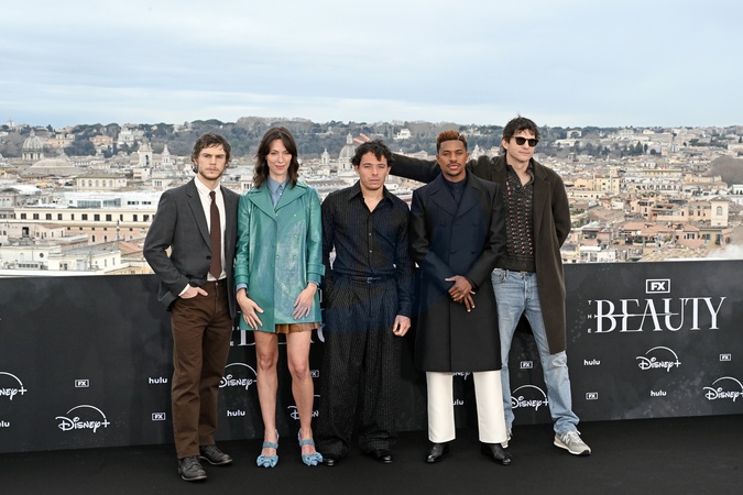 January 19, 2026, Rome. Presentation of The Beauty, the new international thriller television series from FX, from executive producer Ryan Murphy, starting January 22nd on Disney+. Pictured are the cast, including Evan Peters, Rebecca Hall wearing a Fendi dress, Anthony Ramos wearing Dolce & Gabbana, Jeremy Pope, and Ashton Kutcher., Credit:Maria Laura Antonelli / Avalon