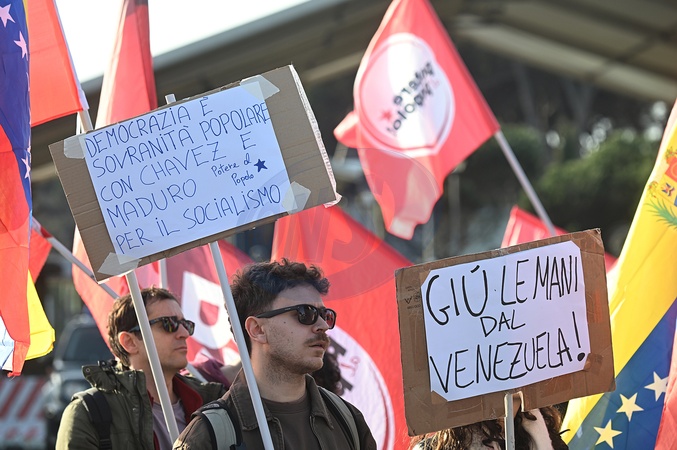 Camp Darby base, protest garrison 'hands off Venezuela, stop US imperialism and Zionism. Freedom for Maduro and Cilias Flores'. Pisa, Italy 18 January 2026, Credit:Aleandro Biagianti / Avalon