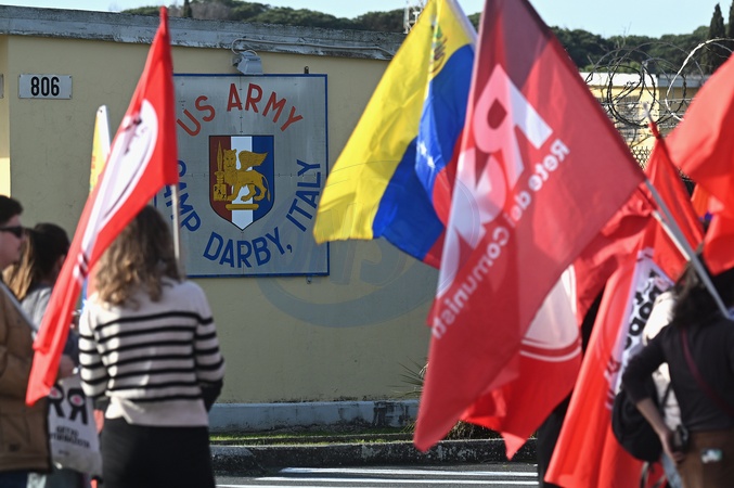 Camp Darby base, protest garrison 'hands off Venezuela, stop US imperialism and Zionism. Freedom for Maduro and Cilias Flores'. Pisa, Italy 18 January 2026, Credit:Aleandro Biagianti / Avalon