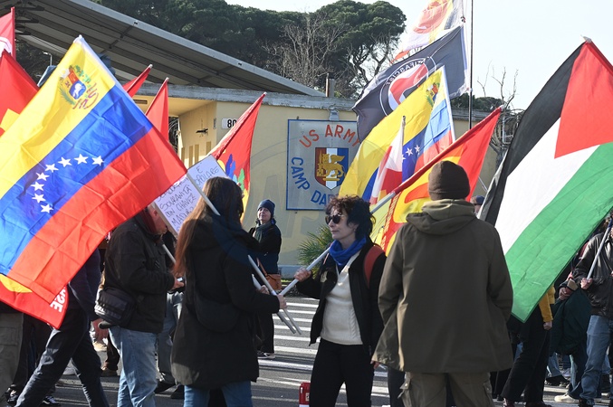 Camp Darby base, protest garrison 'hands off Venezuela, stop US imperialism and Zionism. Freedom for Maduro and Cilias Flores'. Pisa, Italy 18 January 2026, Credit:Aleandro Biagianti / Avalon