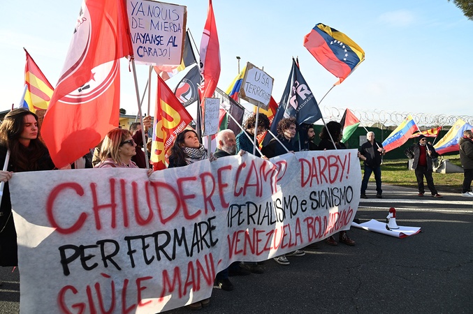 Camp Darby base, protest garrison 'hands off Venezuela, stop US imperialism and Zionism. Freedom for Maduro and Cilias Flores'. Pisa, Italy 18 January 2026, Credit:Aleandro Biagianti / Avalon
