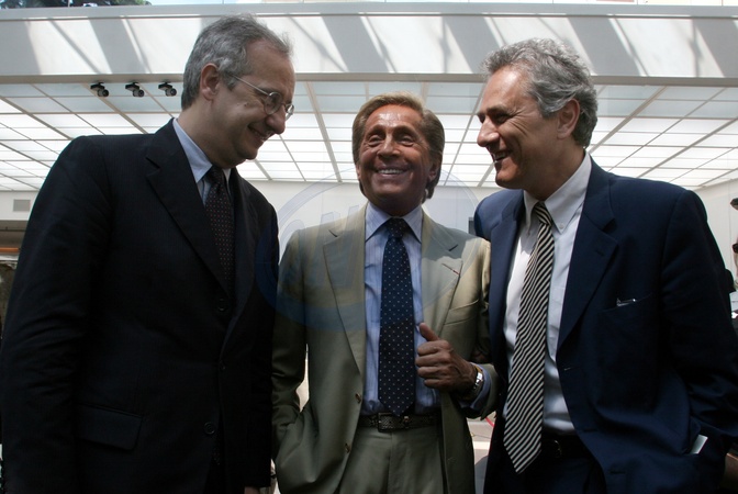 13/07/2007 PRESENTAZIONE DEI FESTEGGIAMENTI PER I 45 ANNI DI ATTIVITA' DELLA MAISON VALENTINO NELLA FOTO LO STILISTA VALENTINO GARAVANI CON WALTER VELTRONI E FRANCESCO RUTELLI, Credit:Cristiano Laruffa / Avalon