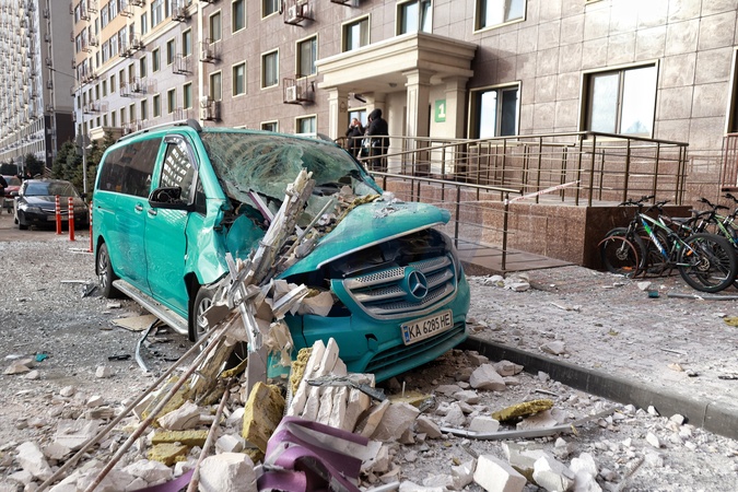 A car damaged by falling stones on the grounds of a 25-storey residential building after a Russian drone strike in Odesa, Ukraine, on January 19, 2026, Credit:Nina Liashonok / Avalon