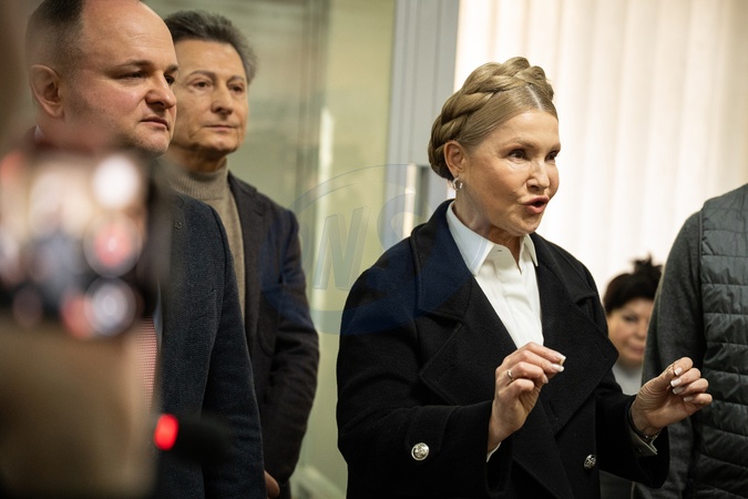Member of Parliament of Ukraine and leader of the Fatherland party parliamentary faction Yuliia Tymoshenko, suspected of proposing an unlawful benefit to Members of Parliament, gives comments to media representatives in the presence of her lawyer Member of Parliament of Ukraine and leader of the Fatherland party parliamentary faction Yuliia Tymoshenko, suspected of proposing an unlawful benefit to Members of Parliament, gives comments to media representatives in the presence of her lawyer Oleksandr Hotin and fellow party member Mykhailo Volynets (L to R) during a closed hearing at the High Anti-Corruption Court on a motion filed by the prosecutor of the Specialized Anti-Corruption Prosecutor's Office seeking the seizure of the suspect's property, Kyiv, Ukraine, on January 19, 2026 and fellow party member Mykhailo Volynets (L to R) during a closed hearing at the High Anti-Corruption Court on a motion filed by the prosecutor of the Specialized Anti-Corruption Prosecutor's Office seeking the seizure of the suspect's property, Kyiv, Ukraine, on January 19, 2026, Credit:Danylo Antoniuk / Avalon