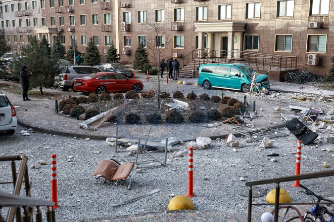 The area of a 25-storey residential building strewn with glass, stones and broken furniture after a Russian drone attack in Odesa, Ukraine, on January 19, 2026, Credit:Nina Liashonok / Avalon