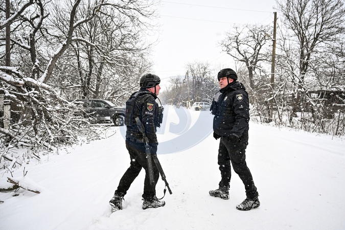 Police officers go door to door to speak with residents about evacuation to safer locations in a frontline settlement near Huliaipole, Zaporizhzhia region, on January 16, 2026. In the area, only police are able to deliver humanitarian aid because of extreme danger and the closeness of hostilities, while also supplying bread and water, evacuating civilians, and feeding abandoned animals in empty villages, Credit:Dmytro Smolienko / Avalon