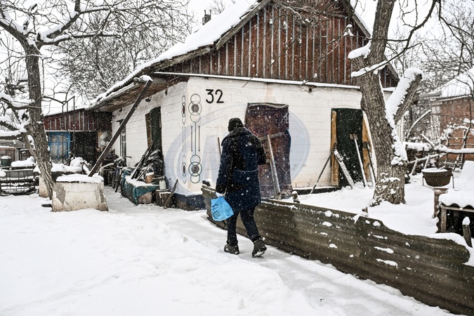 A man carries a food package delivered by police officers during a humanitarian mission in one of the frontline settlements near Huliaipole, Zaporizhzhia region, on January 16, 2026. Due to deadly risks and the proximity of the front line, police are solely responsible for humanitarian assistance in the area, including food deliveries, evacuations, and feeding abandoned animals during patrols in deserted villages, Credit:Dmytro Smolienko / Avalon
