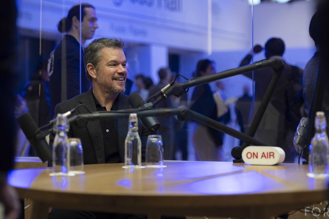 Davos on Air: Rethinking with Adam Grant session with Adam Grant, Saul P. Steinberg Professor of Management and Psychology, Wharton School, University of Pennsylvania, USA; Gary White, Co-Founder and Chief Executive Officer, Water.org, USA; Matt Damon, Co-Founder, Water.org, USA; at the World Economic Forum Annual Meeting 2026 in Davos-Klosters, Switzerland, on 20/1/2026 from 12:30 to 13:15 in the Congress Centre – Davos On Air (Zone C), Podcast. (podcast/thinking 2). 2026 World Economic Forum, Credit:AMIT LAVEE/World Economic Forum / Avalon