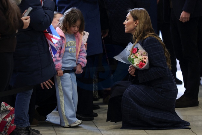 Britain's Kate, Princess of Wales speaks to a child while visiting the National Curling Academy in Stirling, Scotland, Britain, January 20, 2026., Credit:Russell Cheyne / Avalon