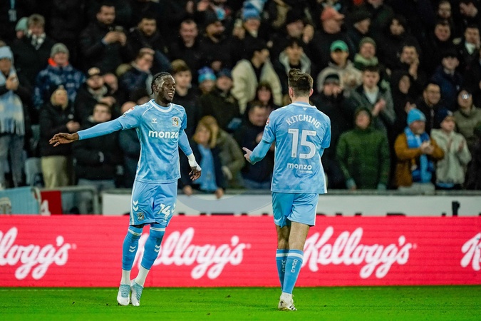 Romain Esse of Coventry City celebrates his goal to make it 1-0 during the Sky Bet Championship match Coventry City vs Millwall at Coventry Building Society Arena, Coventry, United Kingdom, 20th January 2026, Credit:Maynard Manyowa/News Images / Avalon