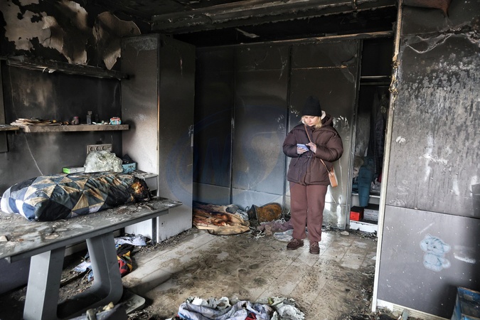 A woman is seen inside an apartment damaged as a result of a Russian strike by attack drones in a residential multi-storey building, Chornomorsk, Odesa region, Ukraine, on January 20, 2026. Russian forces attacked civilian infrastructure in the Odesa region and energy facilities using drones. A UAV strike on a nine-storey residential building was recorded in Chornomorsk, Credit:Nina Liashonok / Avalon