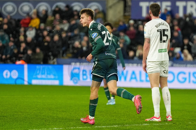 Mathias Jørgensen of Blackburn Rovers celebrates scoring his teams first goal during the Sky Bet Championship match Swansea City vs Blackburn Rovers at Swansea.com Stadium, Swansea, United Kingdom, 20th January 2026, Credit:Andrew Lewis/News Images / Avalon