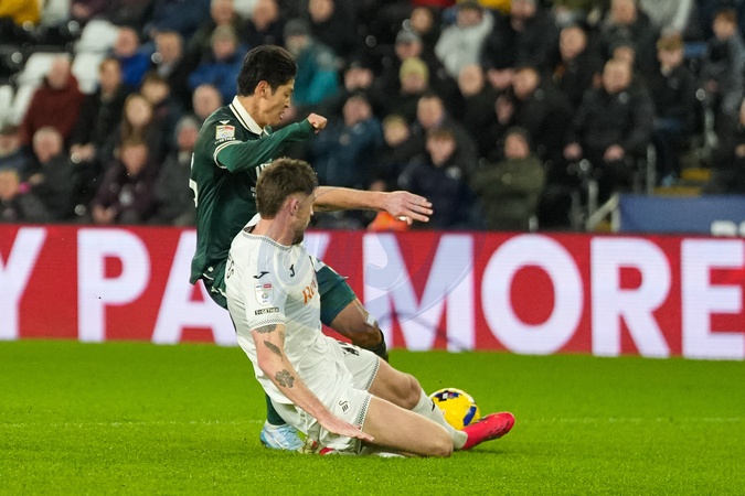 Yuki Ohashi of Blackburn Rovers is tackled by Cameron Burgess of Swansea City during the Sky Bet Championship match Swansea City vs Blackburn Rovers at Swansea.com Stadium, Swansea, United Kingdom, 20th January 2026, Credit:Andrew Lewis/News Images / Avalon