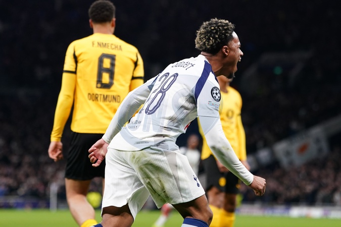 Wilson Odobert of Tottenham Hotspur celebrates 1-0 lead during the UEFA Champions league Matchday 7 of 8 Tottenham Hotspur vs Borussia Dortmund at Tottenham Hotspur Stadium, London, United Kingdom, 20th January 2026, Credit:Harvey Murphy/News Images / Avalon