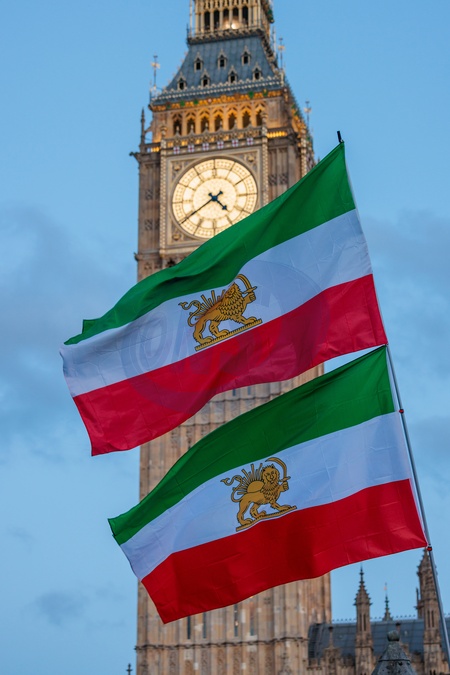 Parliament Square, London, UK. 20th January 2026.Activists and members of the Iranian community in London protest opposite the Houses of Parliament, demanding that the UK government place the Islamic Revolutionary Guard Corps (IRGC) on Britain's terrorist list with chants including 'UK Government, stop supporting terrorists!' and 'IRGC Terrorists, UK put them on the list!", Credit:Photo by Amanda Rose / Avalon