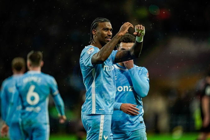 Haji Wright of Coventry City celebrates his goal to make it 2-1 during the Sky Bet Championship match Coventry City vs Millwall at Coventry Building Society Arena, Coventry, United Kingdom, 20th January 2026, Credit:Maynard Manyowa/News Images / Avalon