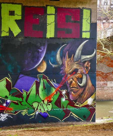 The recent colourful artworks on the underside of the viaduct. The Loddon Viaduct is a place where graffiti artists come to display their talents, with ever changing artworks on the underpass to brighten up commuters and walkers days with the vibrant displays, one often being covered by another within days. The work can be seen from the River Thames, the link road and the showcase cinema complex., Credit:Geoffrey Swaine / Avalon