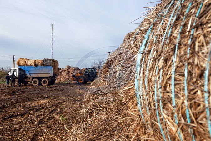 A truck loaded with straw bales for alternative heating at a school in the Marazliivka territorial community, Odesa region, Ukraine, on January 19, 2026. Due to prolonged electricity outages and heating disruptions resulting from Russian missile and drone attacks on Ukraine's energy infrastructure, schools in the region are switching to straw heating, Credit:Nina Liashonok / Avalon