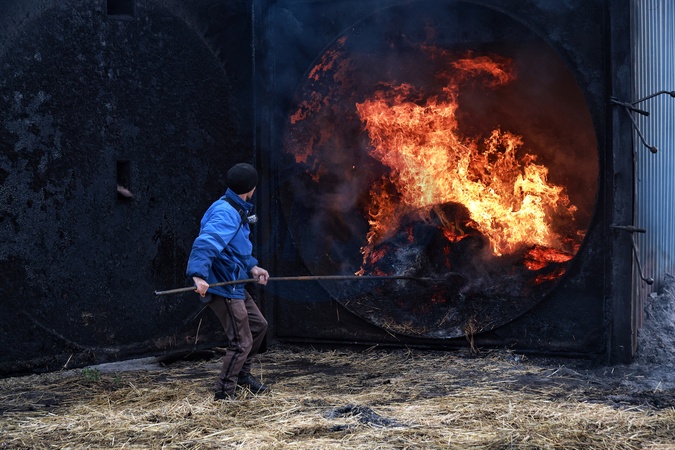 A man stands next to a straw-fueled boiler on the premises of a school in the Marazliivka territorial community, Odesa region, Ukraine, on January 19, 2026. Due to prolonged electricity outages and heating disruptions resulting from Russian missile and drone attacks on Ukraine's energy infrastructure, schools in the region are switching to straw heating, Credit:Nina Liashonok / Avalon