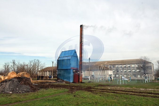 A straw-fueled boiler is seen at a school in the Marazliivka territorial community, Odesa region, Ukraine, on January 19, 2026. Due to prolonged electricity outages and heating interruptions resulting from Russian missile and drone attacks on Ukraine's energy infrastructure, schools in the region are transitioning to straw heating, Credit:Nina Liashonok / Avalon