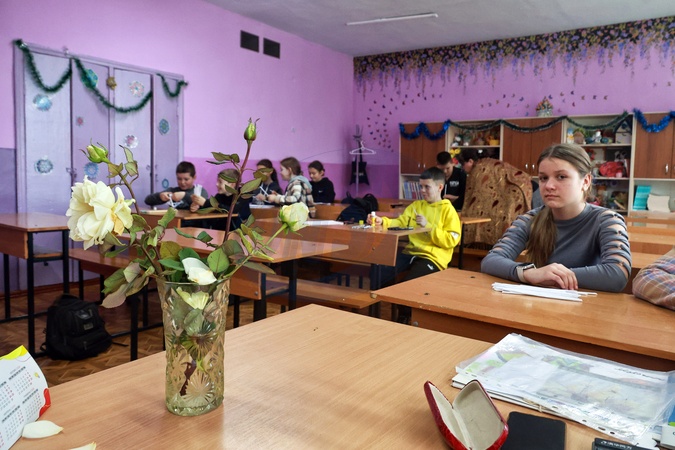 Schoolchildren sit at their desks inside a school heated with straw in the Marazliivka territorial community, Odesa region, Ukraine, on January 19, 2026. Due to prolonged electricity outages and heating interruptions resulting from Russian missile and drone attacks on Ukraine's energy infrastructure, schools in the region are transitioning to straw heating, Credit:Nina Liashonok / Avalon
