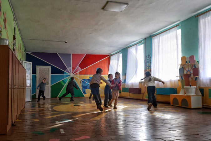 Children play inside a straw-heated school in the Marazliivka territorial community, Odesa region, Ukraine, on January 19, 2026. Due to prolonged electricity outages and heating interruptions resulting from Russian missile and drone attacks on Ukraine's energy infrastructure, schools in the region are transitioning to straw heating, Credit:Nina Liashonok / Avalon