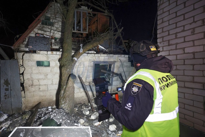 A forensic expert of the National Police of Ukraine uses a flashlight to record video footage of the aftermath of a Russian guided aerial bomb strike in a private residential area of the Slobidskyi district of Kharkiv, Ukraine, on January 19, 2026, Credit:Viacheslav Madiievskyi / Avalon
