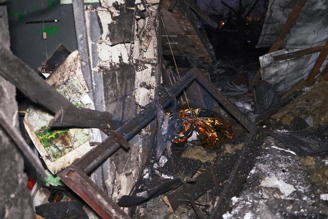 The body of a woman covered with a thermal blanket lies outside a private house hit by a Russian KAB in the Slobidskyi district of Kharkiv, Ukraine, on January 19, 2026, Credit:Viacheslav Madiievskyi / Avalon