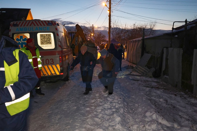 Women, holding each other arm in arm, approach emergency medical workers on duty at the site of response operations following a Russian guided aerial bomb strike on a private residential area in the Slobidskyi district of Kharkiv, Ukraine, on January 19, 2026, Credit:Viacheslav Madiievskyi / Avalon