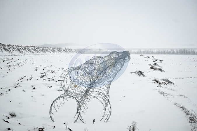Servicemen of the Armed Forces of Ukraine build defensive structures using barbed wire in the Huliaipole area, Zaporizhzhia region, Ukraine, on January 16, 2026. The situation in the Huliaipole sector has remained tense for several weeks. Russian forces are attempting to seize Huliaipole, with dozens of clashes reported daily both in the town itself and in surrounding settlements, Credit:Dmytro Smolienko / Avalon