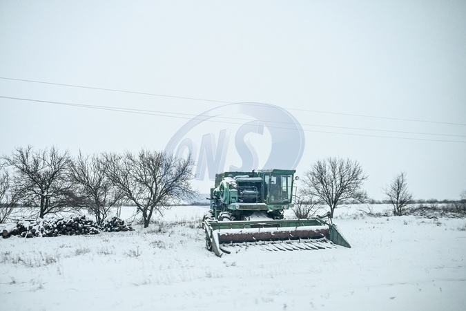 Abandoned agricultural machinery stands in a field near the frontline city of Huliaipole, Zaporizhzhia region, Ukraine, on January 16, 2026. The situation in the Huliaipole sector has remained tense for several weeks. Russian forces are attempting to seize Huliaipole, with dozens of clashes reported daily both in the city itself and in surrounding settlements, Credit:Dmytro Smolienko / Avalon