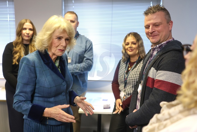 CHELTENHAM, ENGLAND - JANUARY 21: Queen Camilla speaks with staff and volunteers during a visit to Gloucestershire Domestic Abuse Support Services (GDASS) to hear about their work supporting people across the county experiencing domestic abuse on January 21, 2026 in Cheltenham, England., Credit:Chris Jackson / Avalon