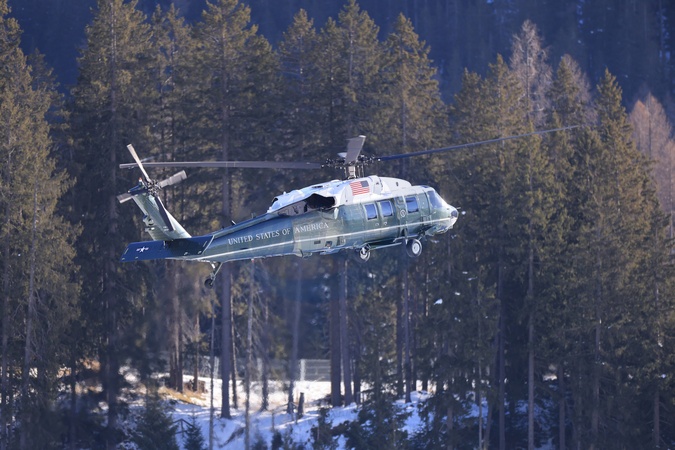 January 21, 2026, Davos. DAVOS - World Economic Forum (WEF). Pictured is the US President's helicopter., Credit:Pierre Teyssot / Avalon