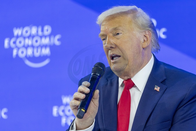 Special Address by Donald J. Trump, President of the United States of America session with Børge Brende, President and CEO, World Economic Forum, Switzerland; Donald J. Trump, President of the United States of America; at the World Economic Forum Annual Meeting 2026 in Davos-Klosters, Switzerland, on 21/1/2026 from 14:30 to 15:15 in the Congress Centre – Congress Hall (Zone C), Plenary. (special address/usa)., Credit:/World Economic Forum / Avalon