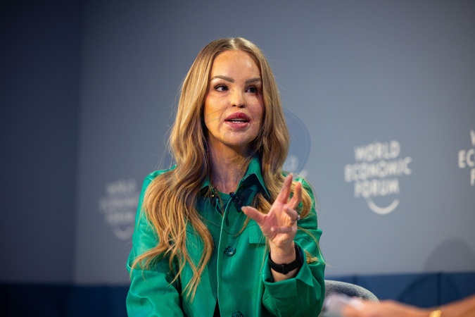 Scars of Survival: How I Rebuilt My Life session with Katie Piper, Writer, activist, television presenter, and model, United Kingdom; Tania Bryer, Anchor, CNBC, United Kingdom; at the World Economic Forum Annual Meeting 2026 in Davos-Klosters, Switzerland, on 21/1/2026 from 11:30 to 12:00 in the Congress Centre – Ignite (Zone B), One-on-One. (scars survival life)., Credit:World Economic Forum / Avalon