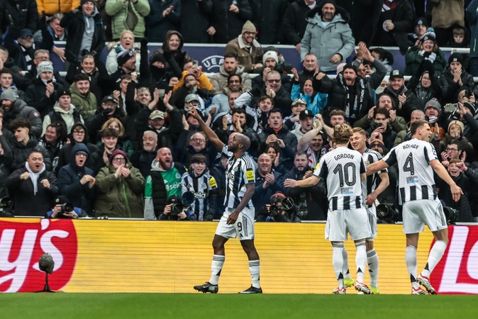 Yoane Wissa of Newcastle United celebrates his goal to make it 1-0 during the UEFA Champions League Matchday 7 of 8 Newcastle United v PSV Eindhovenn at St. James's Park, Newcastle, United Kingdom, 21st January 2026, Credit:Mark Cosgrove/News Images / Avalon